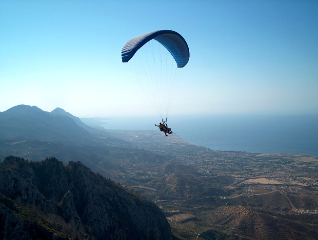 KKTC'nin muhteşem dağları ve Akdeniz manzarası eşliğinde gökyüzünde süzülün.